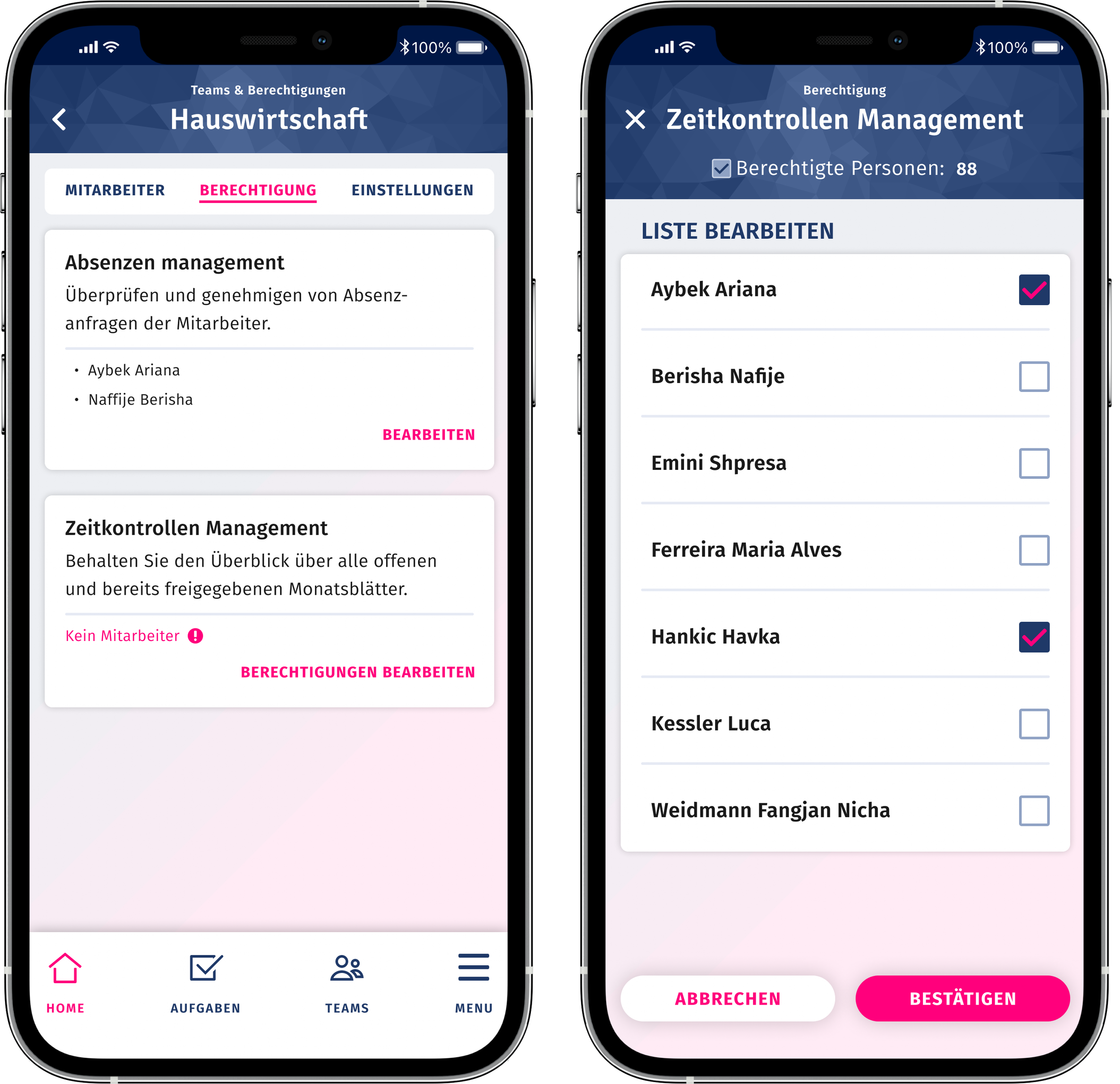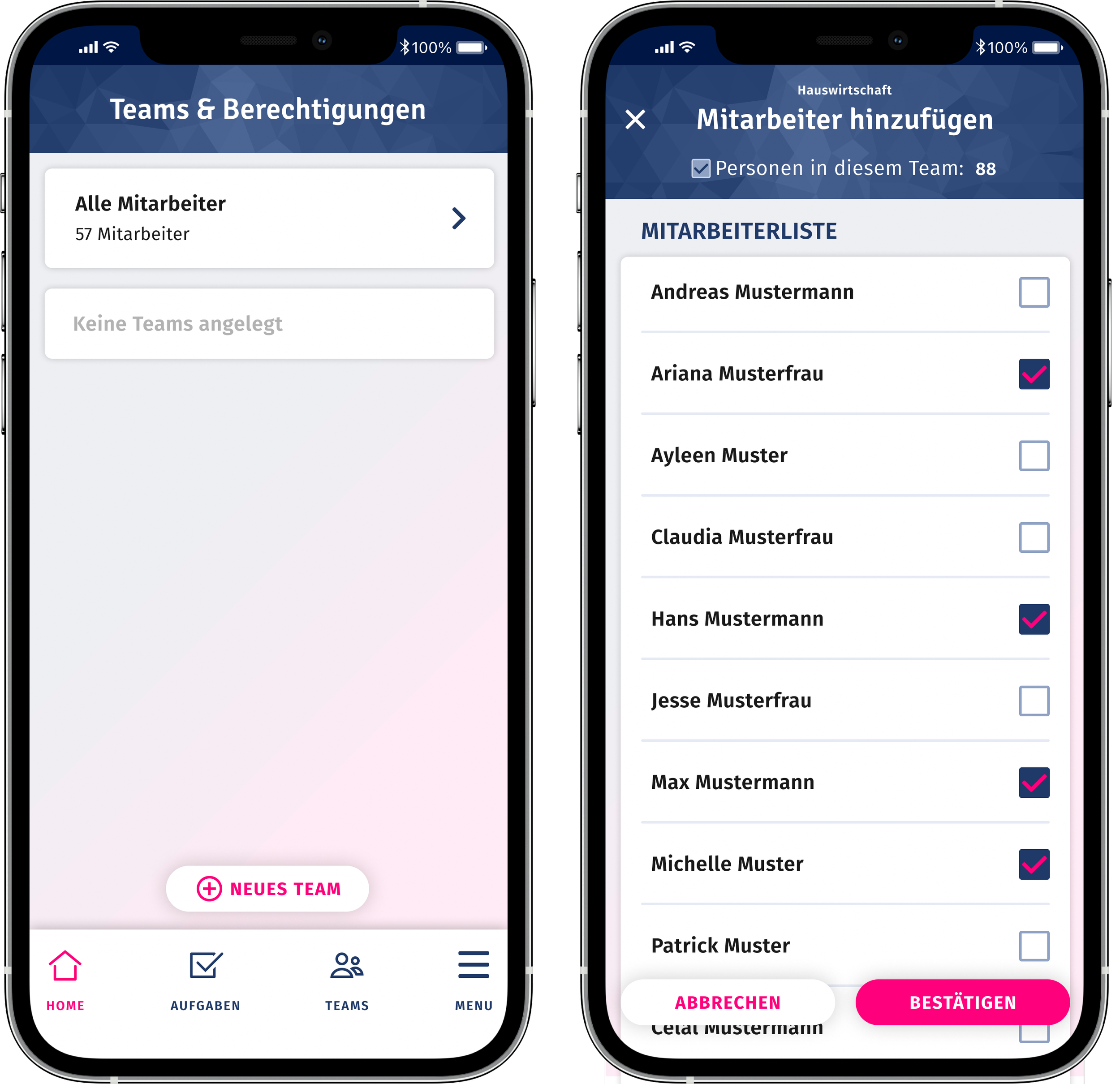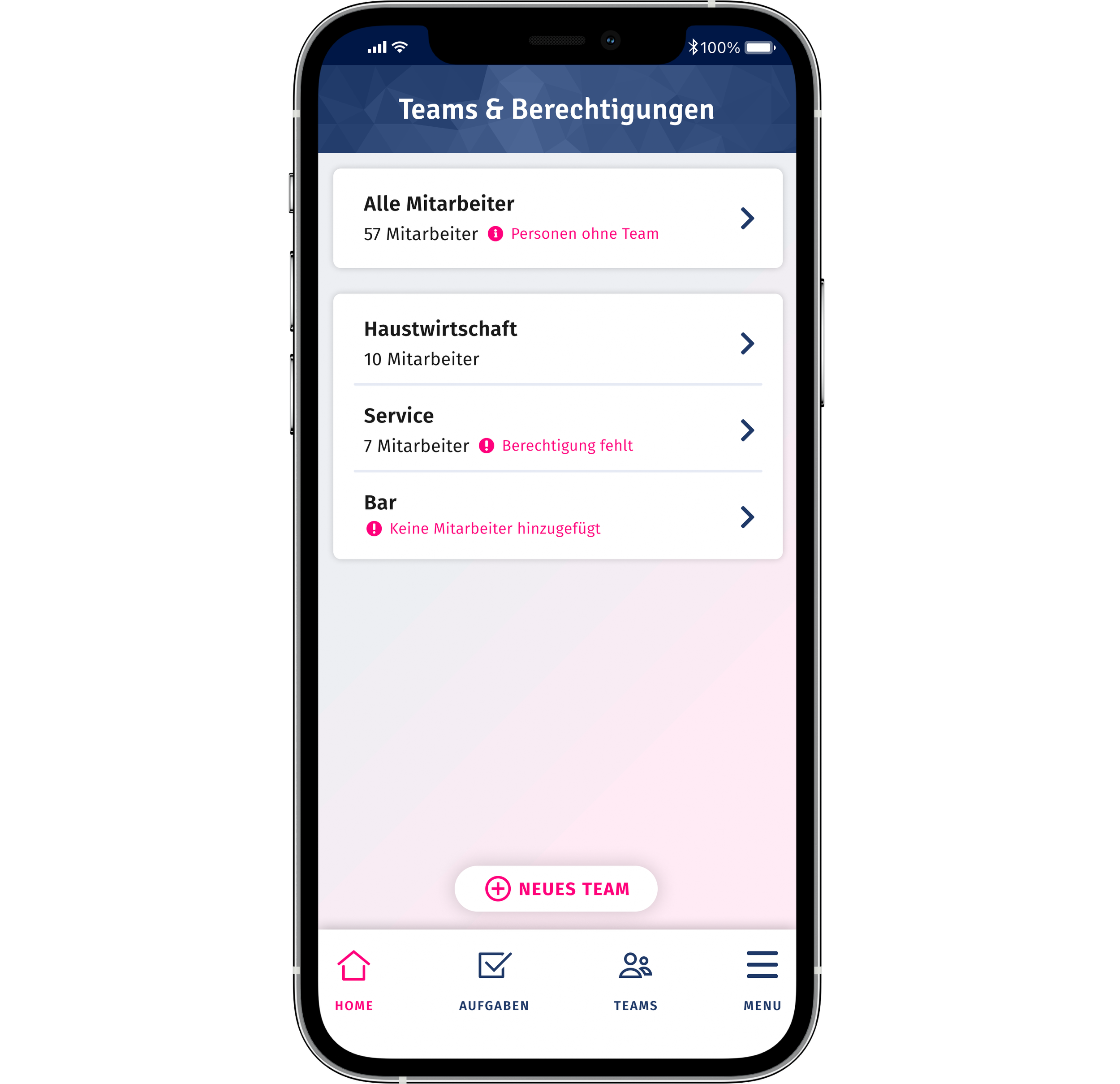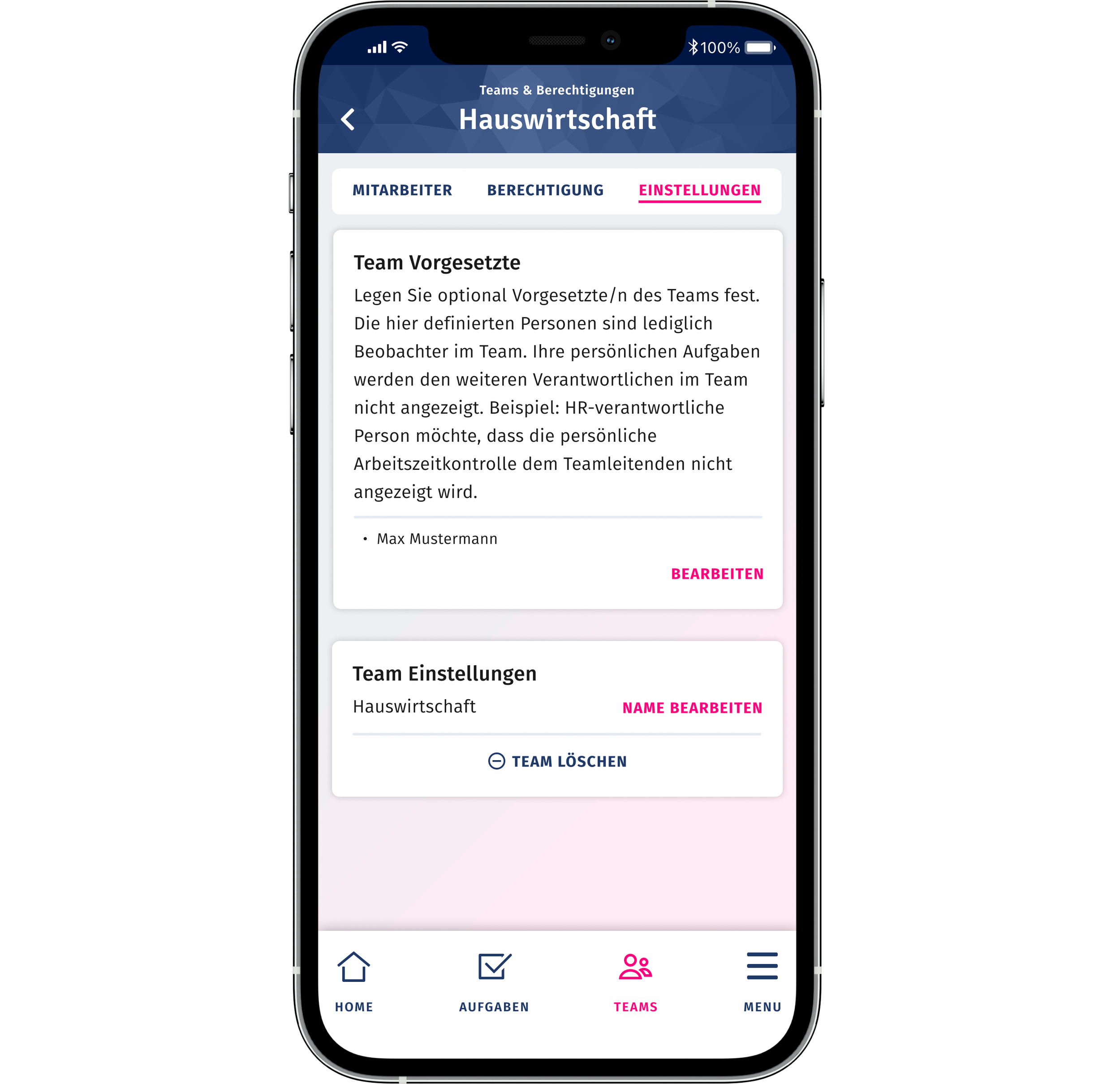 Sie können beliebig viele Teams in unterschiedlichen Grössen erstellen. Pro Team definieren Sie später die verantwortliche Person für die Dienstplanung sowie das HR.